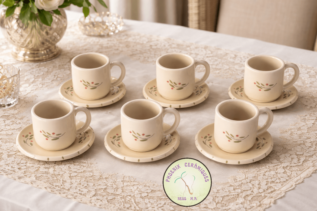 • Jocs de cafè únics.• Realitzats amb gres mitjançant el torn ceràmic.• Cuits a 1260ºC.