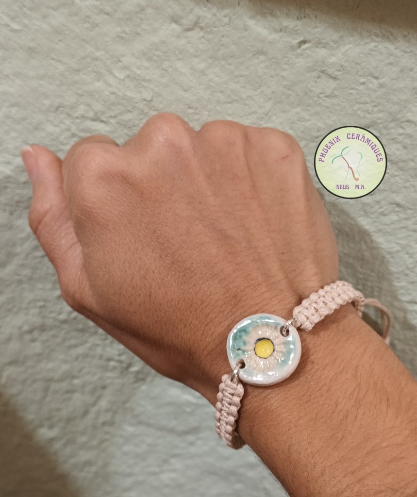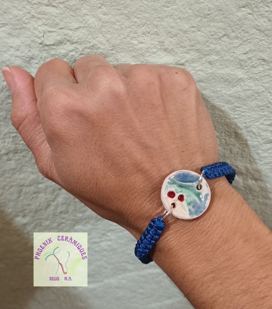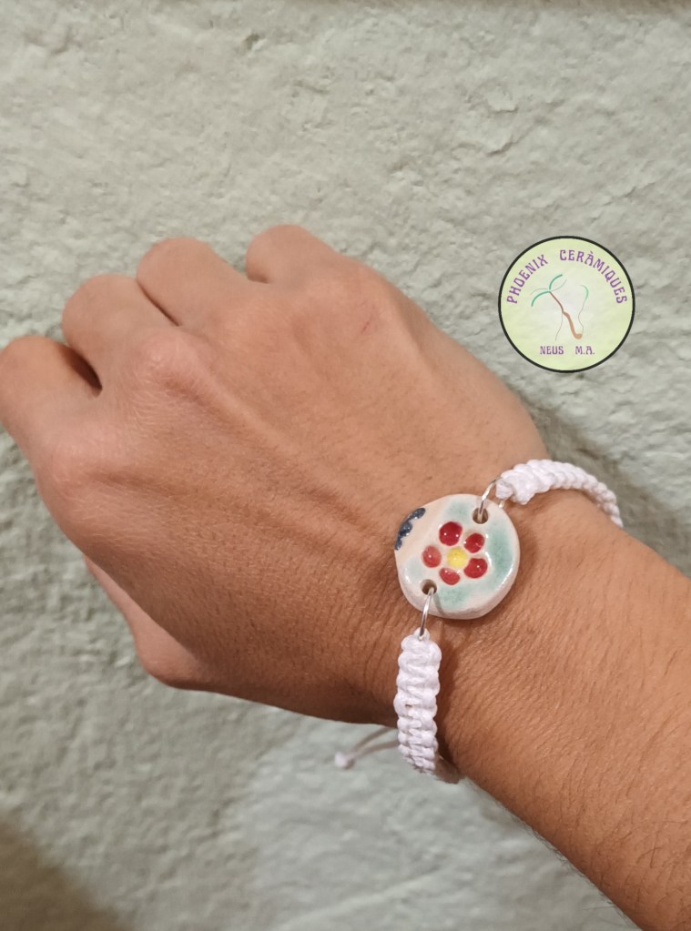 💮 Les realitzo amb gres esmaltat i pintat a pinzell, muntades sobre fil de cotó trensat manualment, per això són peçes úniques.
